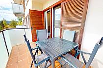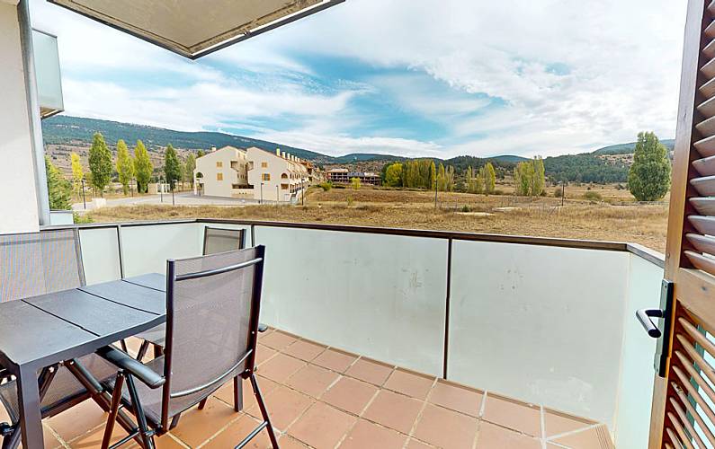 Terraza equipada con mobiliaria exterior y con vistas impresionantes a la montaña, ideal para relajarte y disfrutar del paisaje.