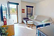 Luminoso salón con sofá cama doble, perfecto para uno o dos niños.