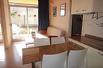 Confortables y modernos apartamentos con aire acondicionado para sies personas. Distribuidos en dos habitación una con cama doble y la otra con dos camas individuales y un sofá-cama doble , cocina tipo kitchenette. Cuentan con un baño completo con bañera. Disponen de una amplia terraza con vistas a mar.