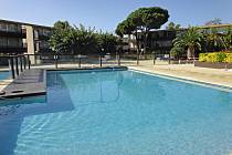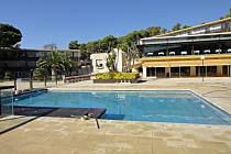 Cuenta con dos piscina comunitaria exteriores de diseño moderno, tanto para adultos como para niños, rodeadas por jardines y arboledas. Alrededor de las piscinas hay tumbonas dispuestas para que los huéspedes puedan tomar el sol y relajarse.