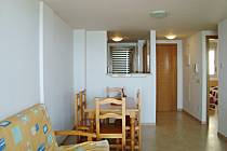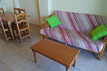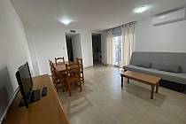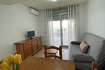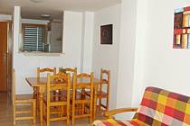 Bloque de apartamentos compuesto por salón comedor con sofá cama, 2 habitaciones dobles (uno con cama doble y otro con dos individuales), baño completo, cocina con vitroceramica, horno y microondas, lavadora, amplias terrazas algunas con vistas frontales o laterales al mar y otras con vistas laterales ligeramente al mar. Todos con TV, wifi y Aire Acondicionado (de pago).COMODIDADES EN EL APARTAMENTO:
