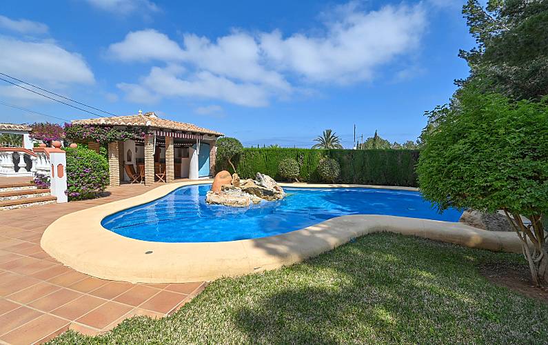Maravillosa y encantadora villa en Denia, Costa Blanca, España, con piscina privada para 4 personas. La casa está situada en una zona residencial y montañosa de playa, a 3 km de la playa Marineta Casiana, Denia. La villa cuenta con 4 dormitorios y 3 baños, distribuidos en 2 niveles. El alojamiento ofrece privacidad, un maravilloso jardín con césped y árboles, una espléndida piscina y hermosas vistas al mar, al valle y a las montañas. Su comodidad y la cercanía a la playa, actividades deportivas, lugares de ocio, lugares de interés y cultura hacen de esta villa un lugar ideal para disfrutar de sus vacaciones en España con familiares o amigos.