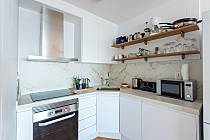 El apartamento consta de salón comedor con tv, wi-fi, cocina americana totalmente equipada (nevera, lavadora, cafetera, tostador, lavavajillas, etc), 2 dormitorios (1 cama doble y 2 individuales), 1 baño con ducha.