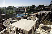 Confortables y modernos apartamentos con aire acondicionado para cuatro personas. Distribuidos en una habitación con dos camas individuales y un sofá-cama doble, cocina tipo kitchenette. Cuentan con un baño completo con bañera. Disponen de una amplia terraza con vistas a la piscina.