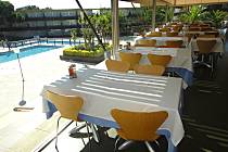 Cuenta con un bar-cafetería con terraza con amplio horario, así como un restaurante con vistas panorámicas con un variado buffet.
